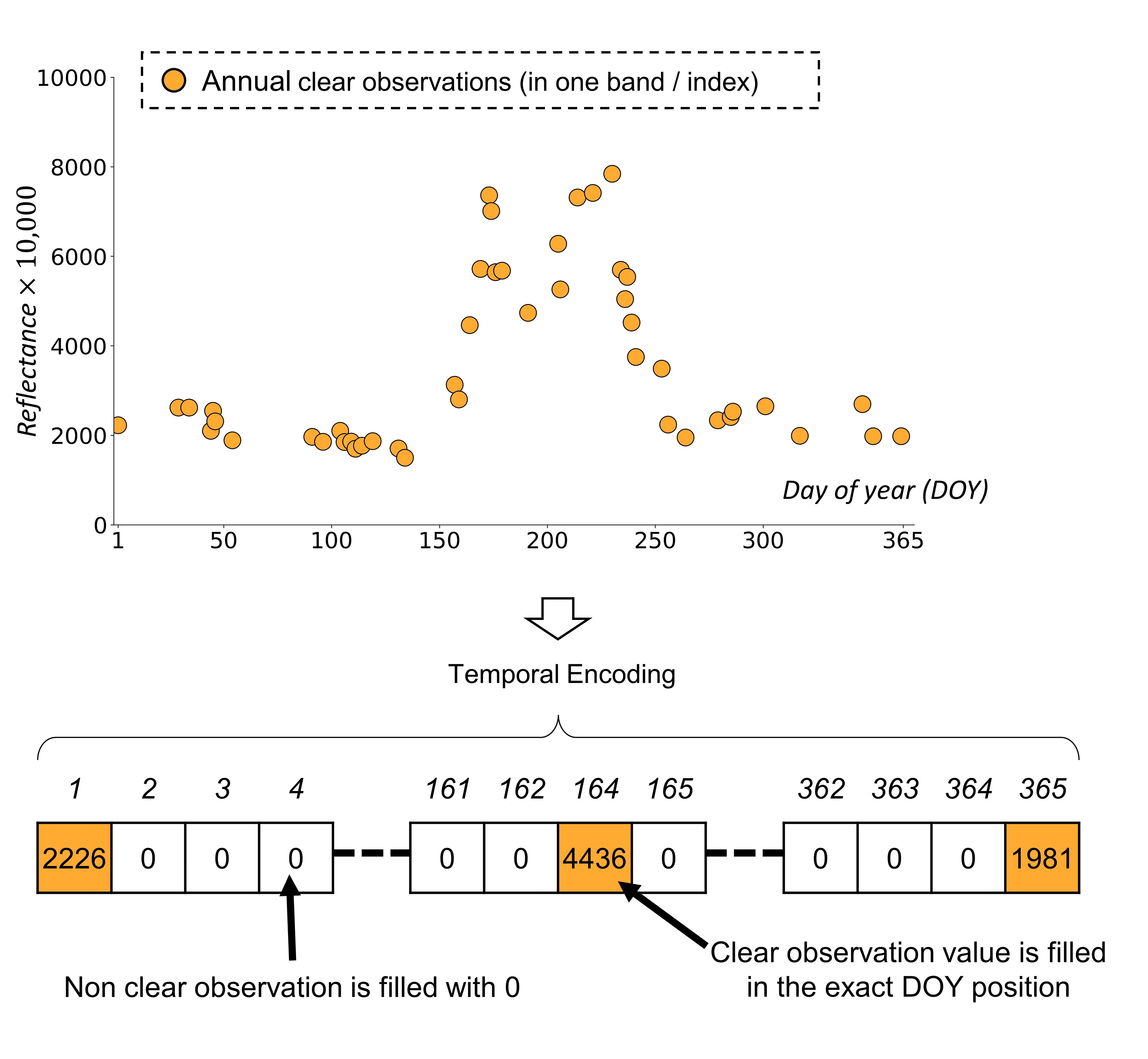 - Each clear observation is inserted at the position matching its acquisition date.