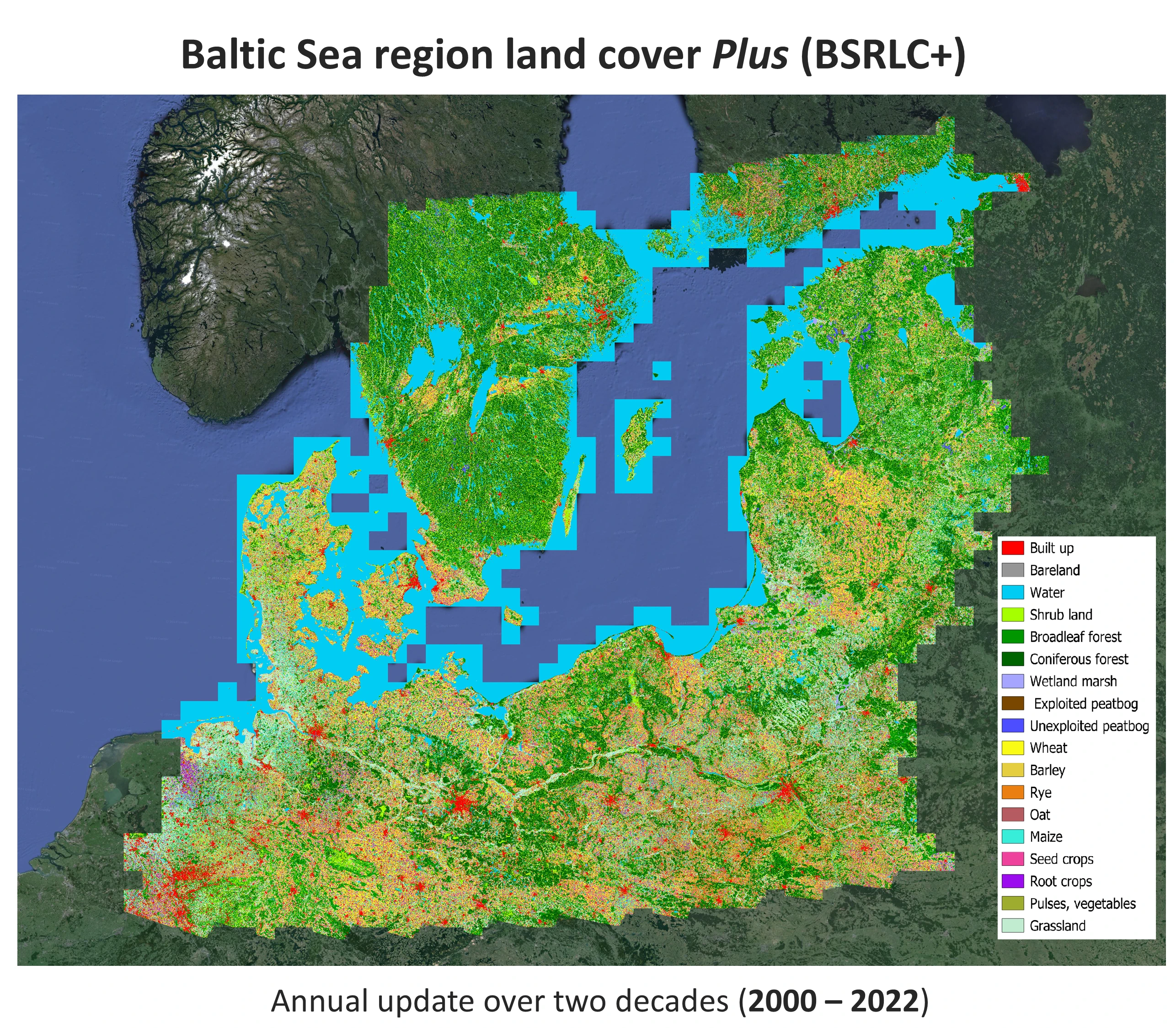 BSRLC+ The first annual 30-m land cover maps with detailed crop types and peatlands in the Baltic Sea region over two decades (2000 – 2022)